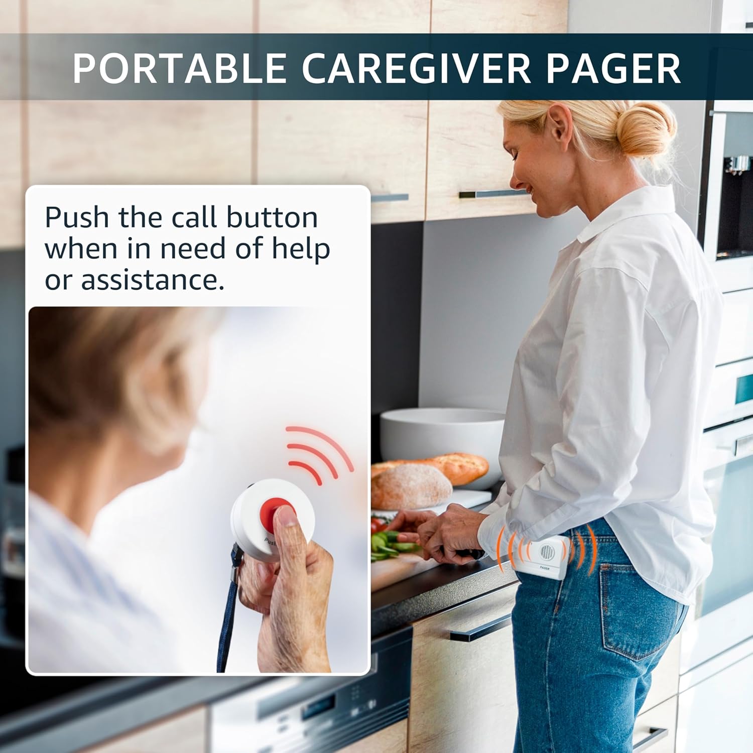 PORTABLE CAREGIVER PAGER: This wireless pager system comes with 1 call button and 1 portable pager. It allows caregiver or care taker the freedom to attend other tasks while receiving alert from residents, seniors, elderly and loved ones.