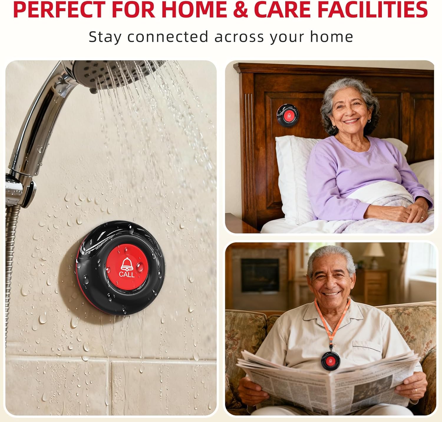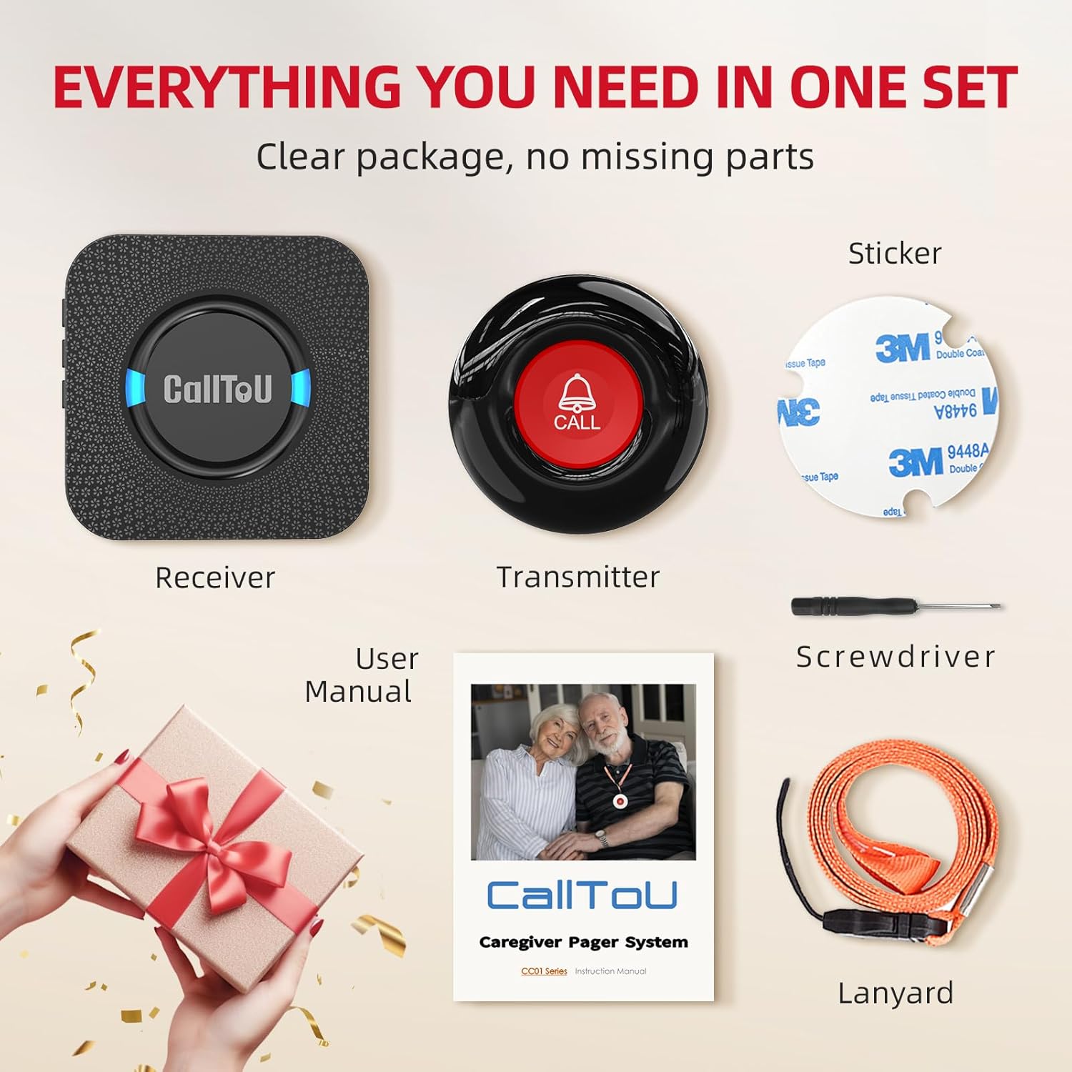 CallToU Caregiver Pager Wireless Call Bell Alert Button for Seniors/Elderly/Patients 1 Plugin Receiver 1 Waterproof Transmitter