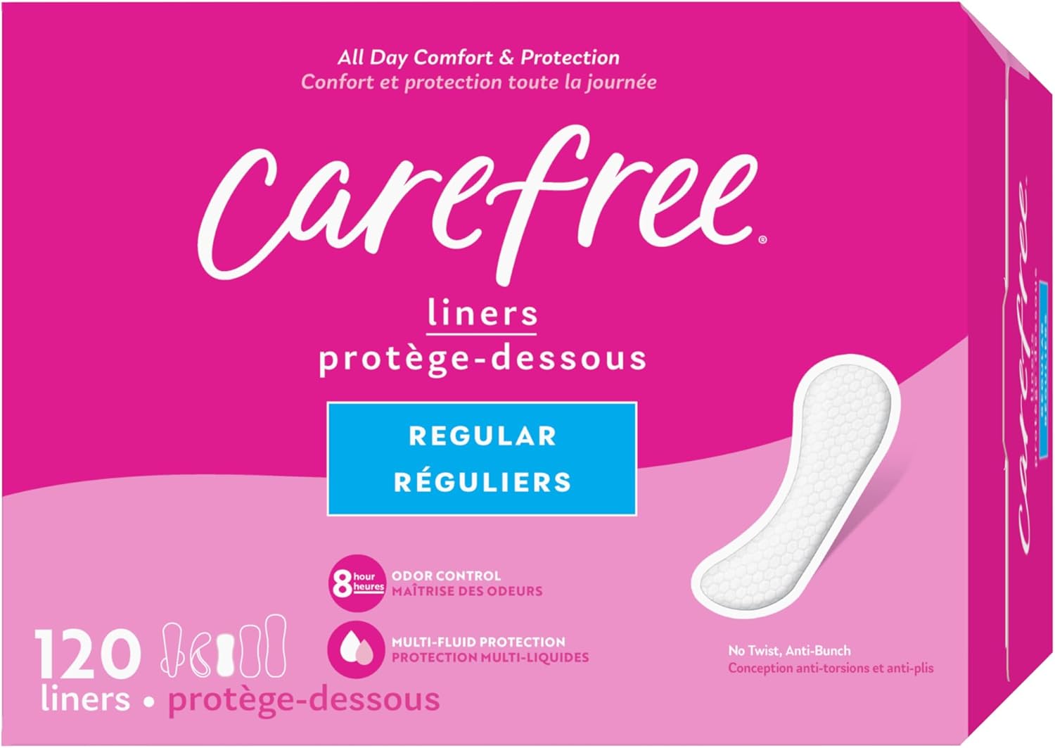 NEW LOOK, BETTER PROTECTION – The Carefree liner you know and love, with a whole new look. 2x more absorbent vs. Carefree Original liners. Packaging may vary.