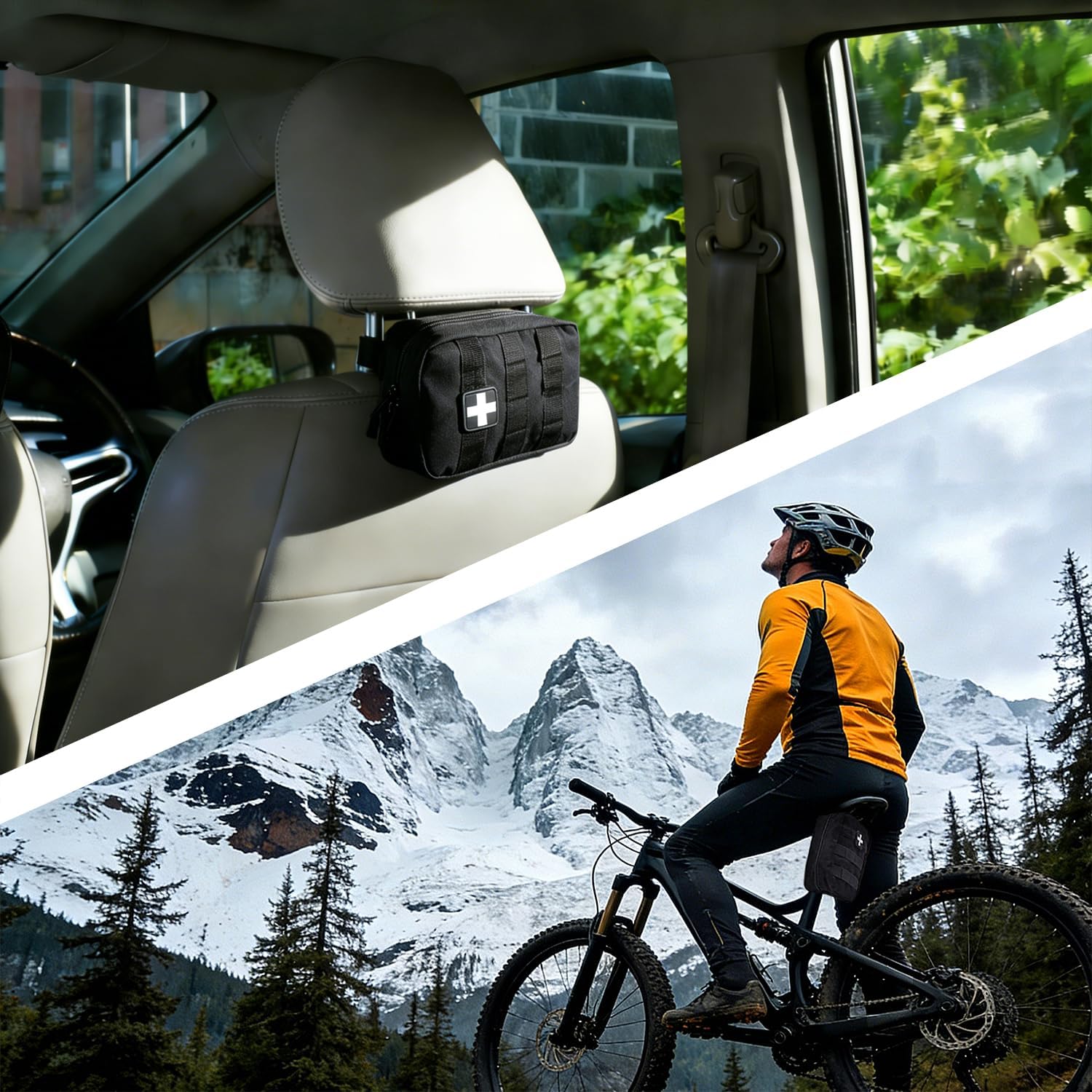 TIPS: Please attach the kit on a platform where you can get at the first time, make sure the kit is secured, that will make it easy to access medical supplies in an emergency