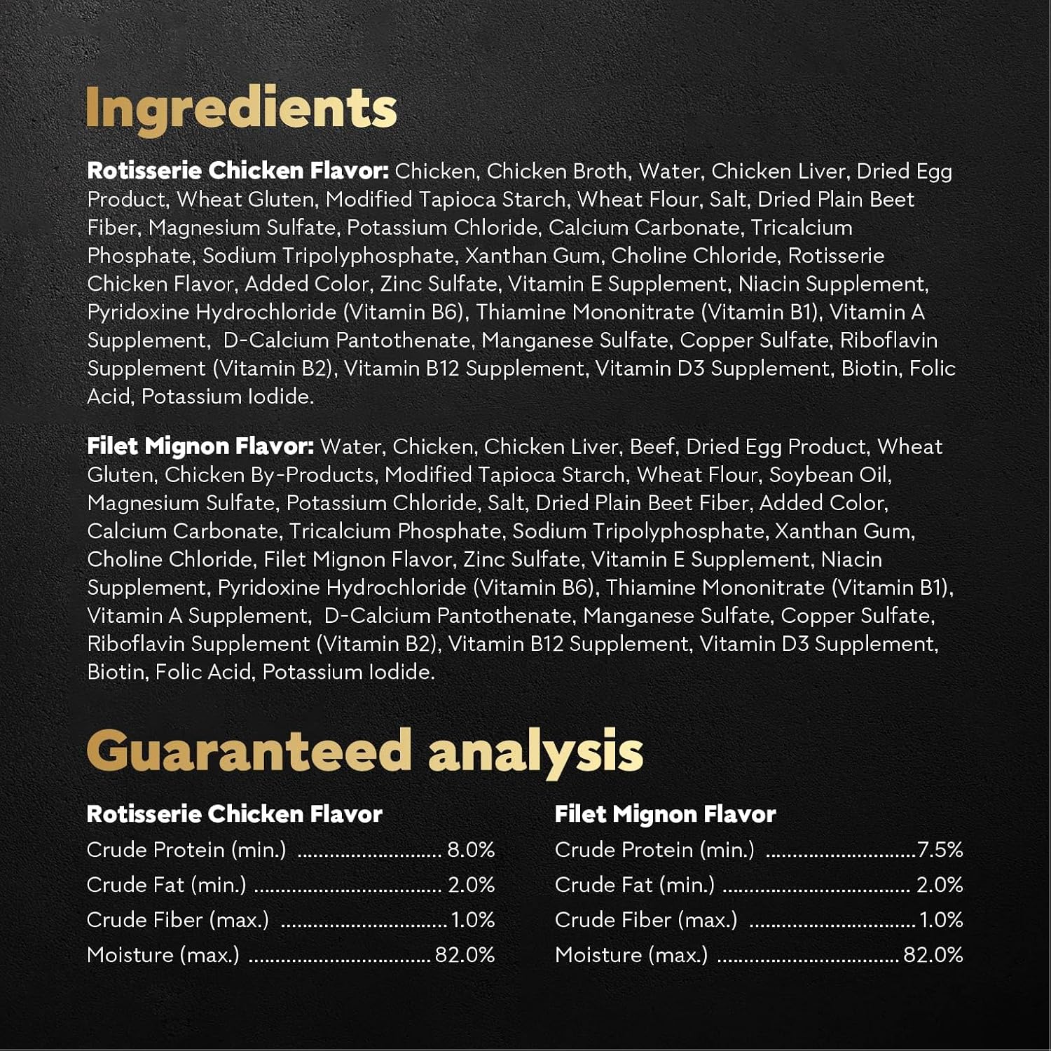 Cesar Filets in Gravy Filet Mignon Flavor and Rotisserie Chicken Flavor Variety Pack brings culinary taste to every bowl. Crafted with real chicken or real beef, Cesar Filets in Gravy wet dog food features high-quality protein and is slow-cooked for great taste. These wet dog food pouches come with a convenient peel-and-serve seal for convenient feeding, with a recipe that is perfect alone or as a dog food topper. For pet parents interested in dog nutrition, this soft dog food is easy to digest but hard to resist. Dog owners can be sure their best friend is getting a meal that is 100% complete and balanced for adult dogs. Cesar Filets in Gravy pet food contains no fillers, added sugar, or artificial flavors; ingredients are natural as defined by the Association of American Feed Control Officials (AAFCO). Delicious and healthy meals for everyday enjoyment and balanced nutrition with this Beef and Chicken Flavor Variety Pack.