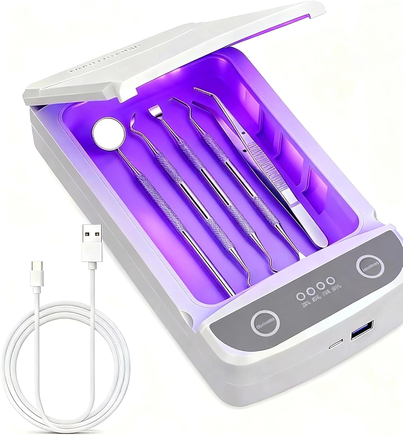 Dental Tools and UV-C Cleaning and Storage Box for Stainless Steel Teeth Cleaning Tools Electric toothbrushes and Various Oral Hygiene Devices