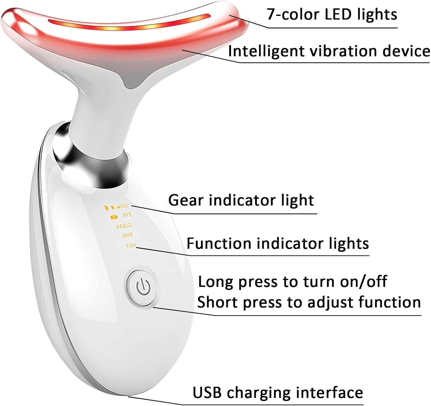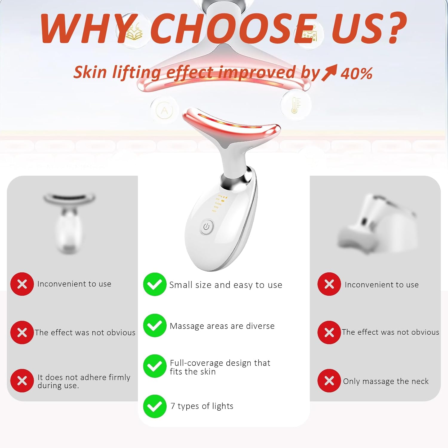 Device | 7-in-1 Red Light Therapy for Face and Neck – 7 Colors, Smart Vibration | Red Light Face Massager Tool – Effectively Remove Wrinkles, Lift Neck, Portable Skin Care Tool (White)