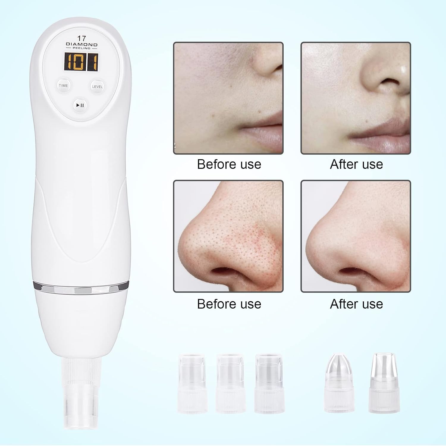 ✨BLACKHEAD VACUUM REMOVE: This blackhead vacuum cleaner provides skin cleaning without hurting and restores skin elasticity. After a period of use, you can see that the pores narrowed noticeably and the skin became smoother.