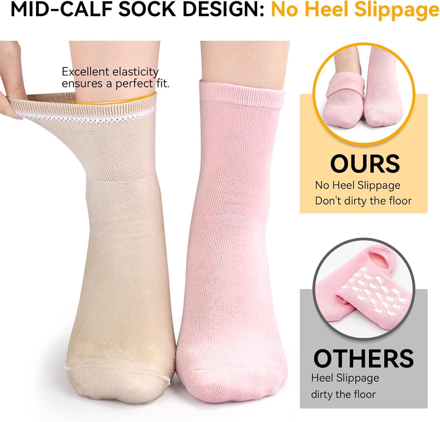 Reusable And Washable: Crafted for repeated use, these foot moisturizing socks are easy to hand wash and air dry after each wear, helping them stay fresh and odor-free. The extended above-ankle fit ensures the gel lining stays in full contact with your skin, locking in moisture from heel to ankle for consistently effective soft