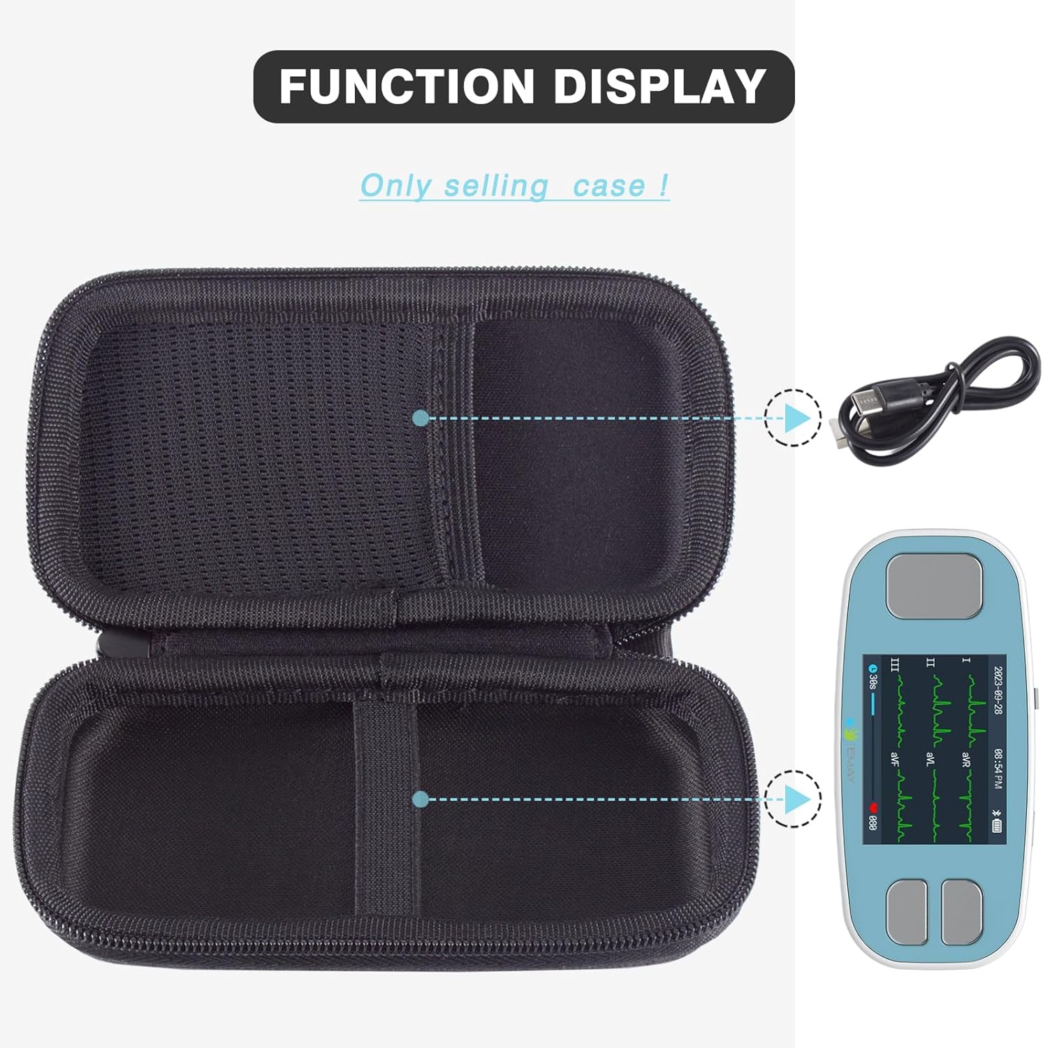 EVGRDCS Hard Carrying Case Compatible with EMAY 6L Portable ECG Monitor,Scratch and Fall Resistant, with mesh Bag (Case Only)