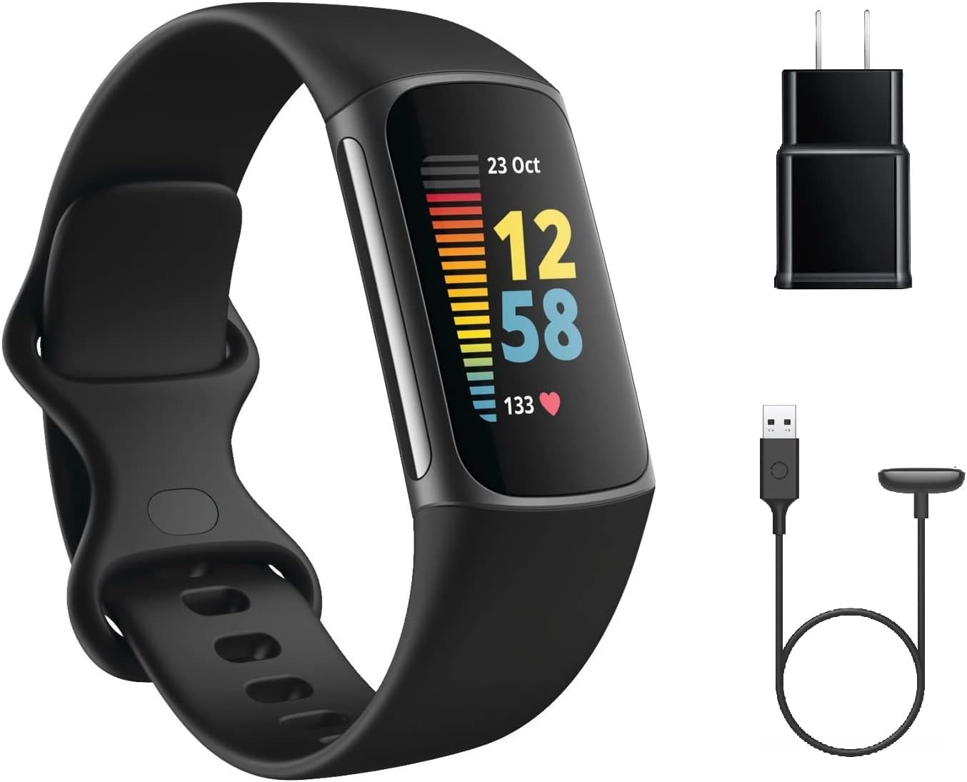 EXCLUSIVE BUNDLE INCLUDES: 1x Fitbit Charge 5, 1x Charging Cable, 1x Infinity Band (Small & Large), 1x Compatible Wall Charging Plug