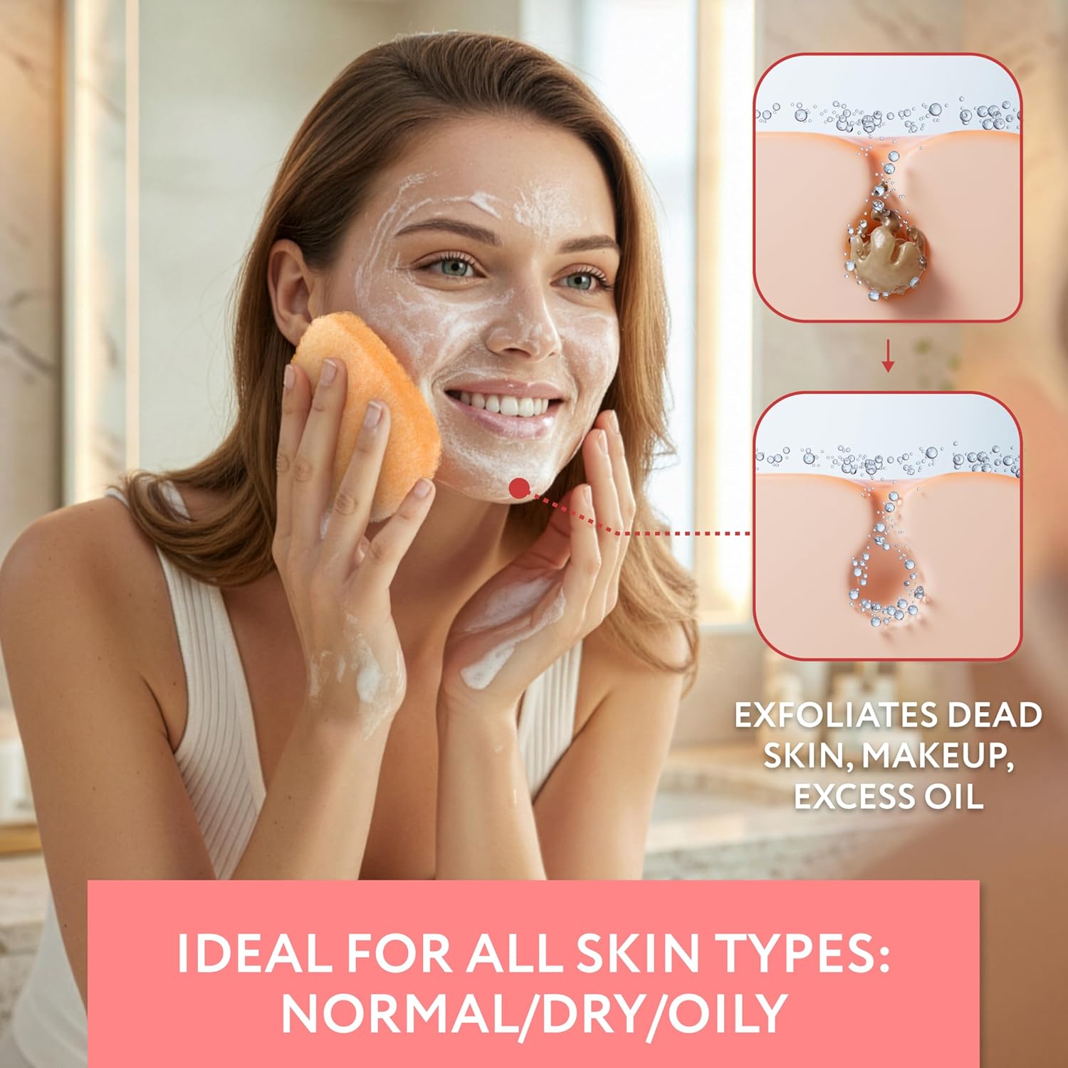 Comprehensive Facial Cleansing: The IMPRESA Face Scrubber Exfoliator Sponges enhance your skincare routine by effectively removing makeup, dirt, and oil. These face sponges for cleansing work seamlessly with your favorite cleanser for a clear complexion