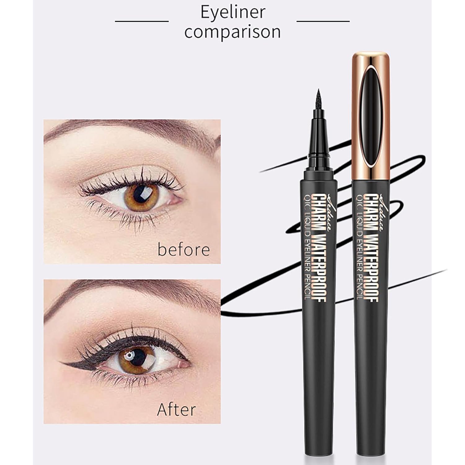 【Super Fine Eyeliner】– With this ultra-fine tip eyeliner, you can easily create precise lines that won’t fade, transfer or smudge all day long, you can precisely define your eye makeup and show different charms of women.