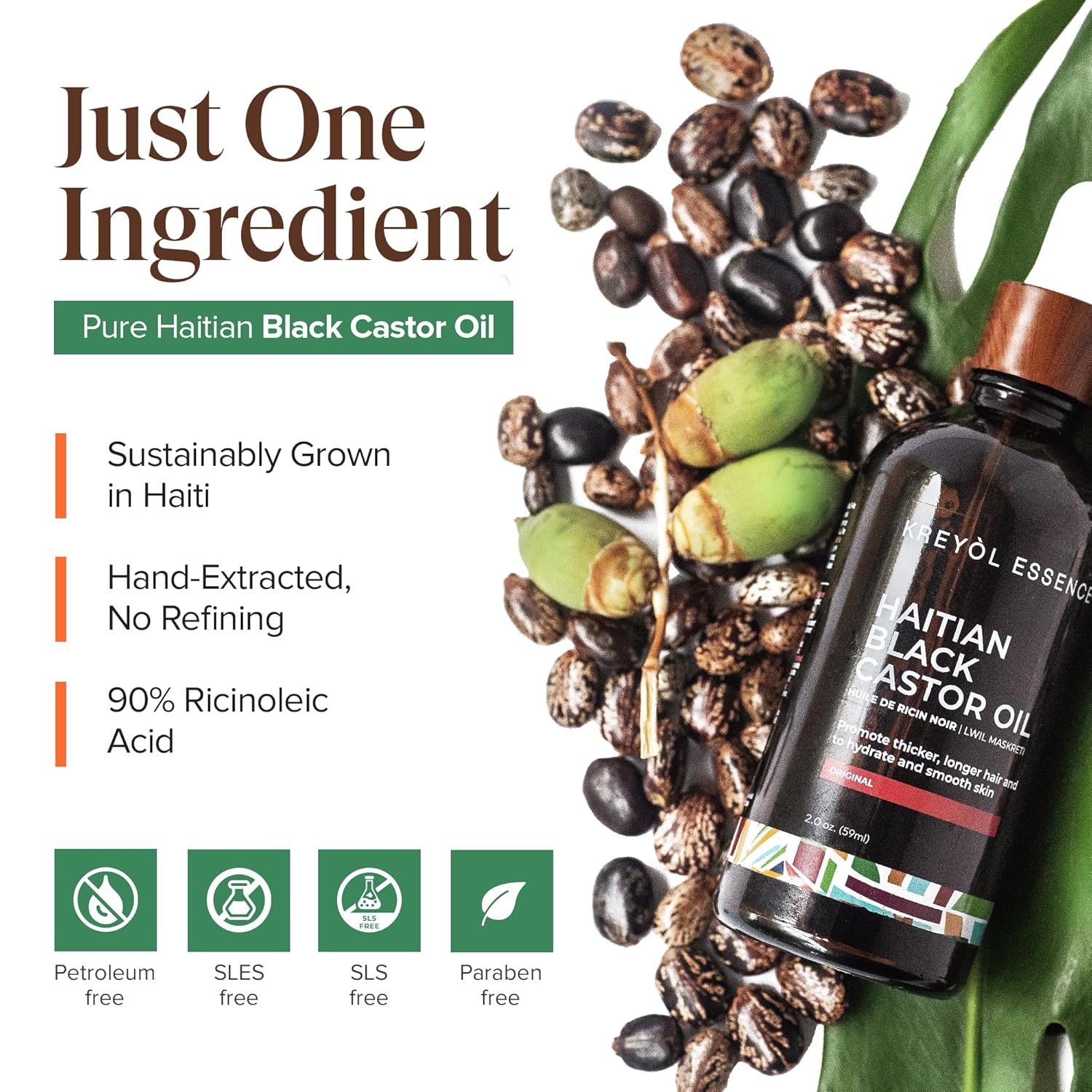 Kreyol Essence – 2 Oz Original Haitian Black Castor Oil, Glass Bottle – Thicker Brows & Longer Eyelashes, Paraben Free, Natural Ingredients