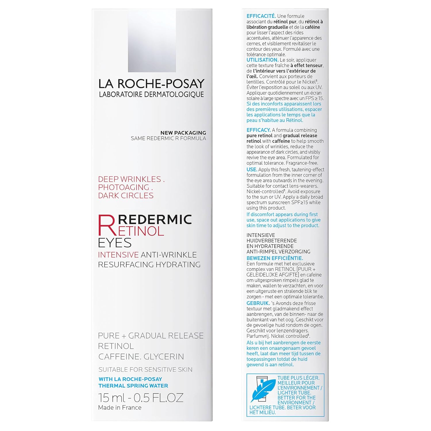 La Roche-Posay Redermic R Eyes Retinol Eye Cream, Anti-Aging Eye Cream to Reduce Wrinkles and Dark Circles With Pure Retinol and Caffeine, 0.5 Fl Oz (Pack of 1)