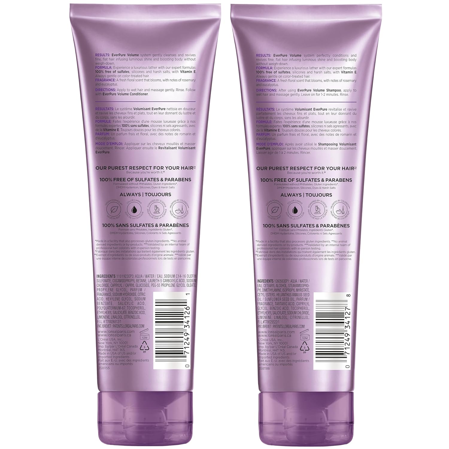 L’Oreal Paris Volume Sulfate Free Shampoo and Conditioner for Color-Treated Hair, EverPure, 8.5 Fl Oz (Set of 2)