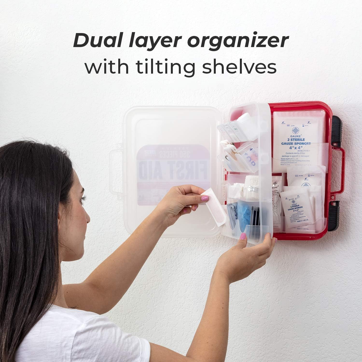 Wall Mountable & Organized for Fast Access: Securely mount this first aid kit on the wall in offices, warehouses, classrooms, garages, or job sites for quick visibility and response. The durable hard case features dual-layer swing-out trays that keep supplies protected, neatly arranged, and easy to locate under pressure.
