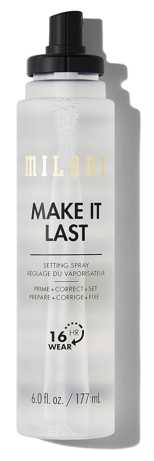 Prime + correct + set. 16 hr wear. 3-in-1 primes, corrects and sets. Lightweight spray locks in makeup up to 16 hours. Keeps color from fading and settling into crease. Cruelty free. Made in USA with US and non-US components.
