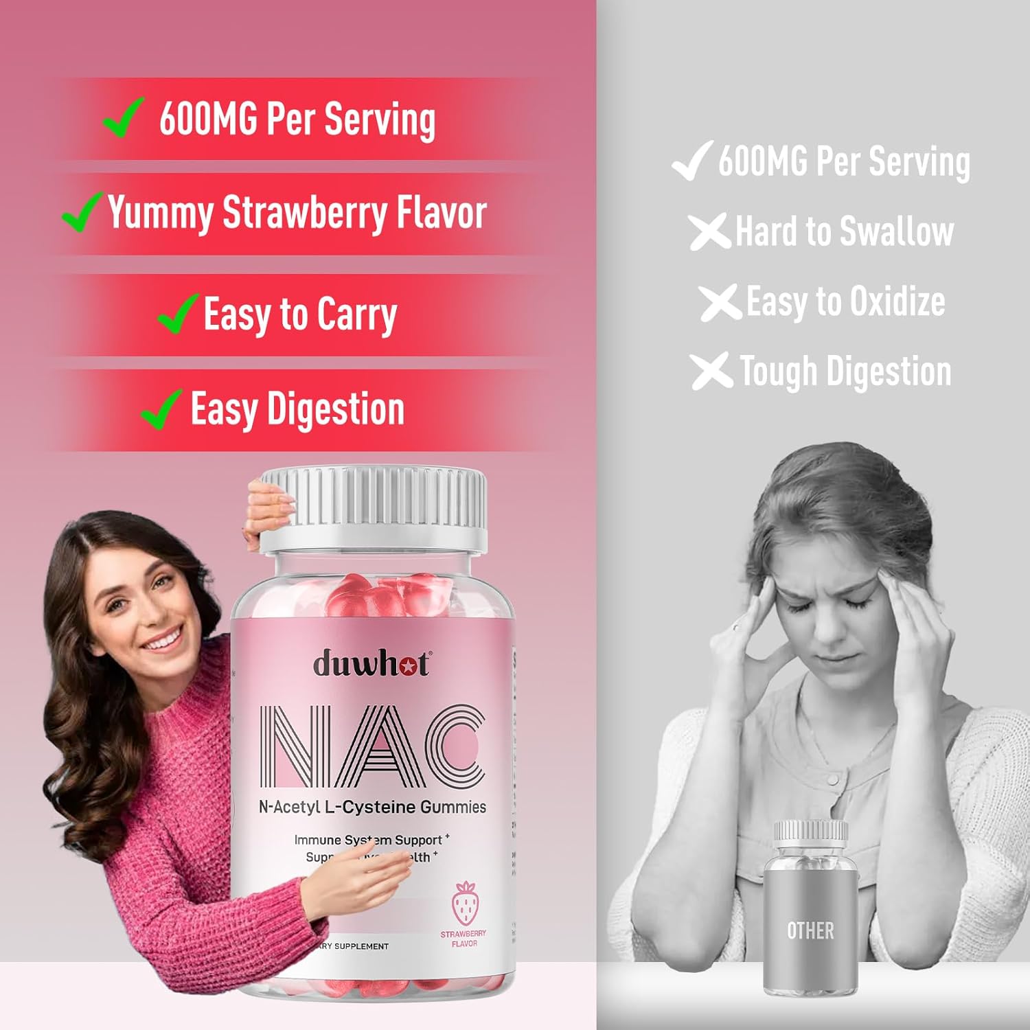 NAC Gummies 600mg, N Acetyl Cysteine Supplement NAC Chewable for Antioxidants & Immune Support, Lung & Liver Health, Natural Strawberry Flavor, 60ct