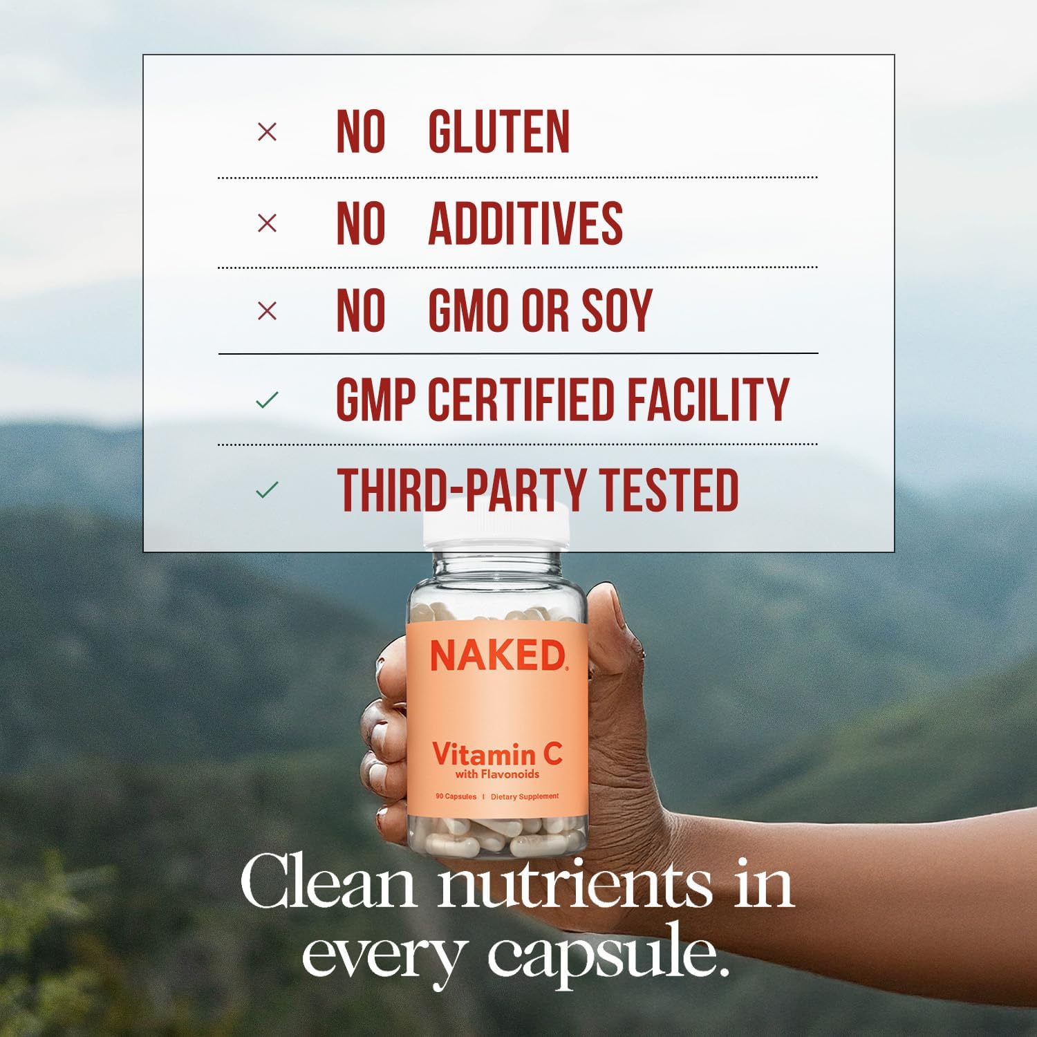 NAKED Vitamin C – 500mg Ascorbic Acid Capsules with Citrus Bioflavonoids – Daily Antioxidant and Immune Support* Made in USA – Vegan, Non-GMO – 90 Capsules