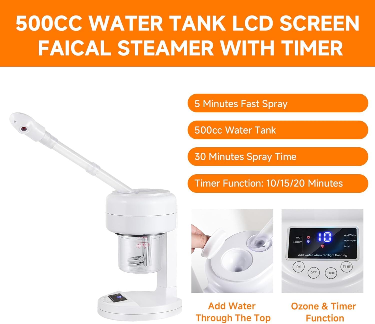 Timer Setting: Digital display allows you to set the ozone mode and timer for customized steaming sessions. You can choose 10, 15, 20 minutes timing, which elevate your skincare routine or professional services.