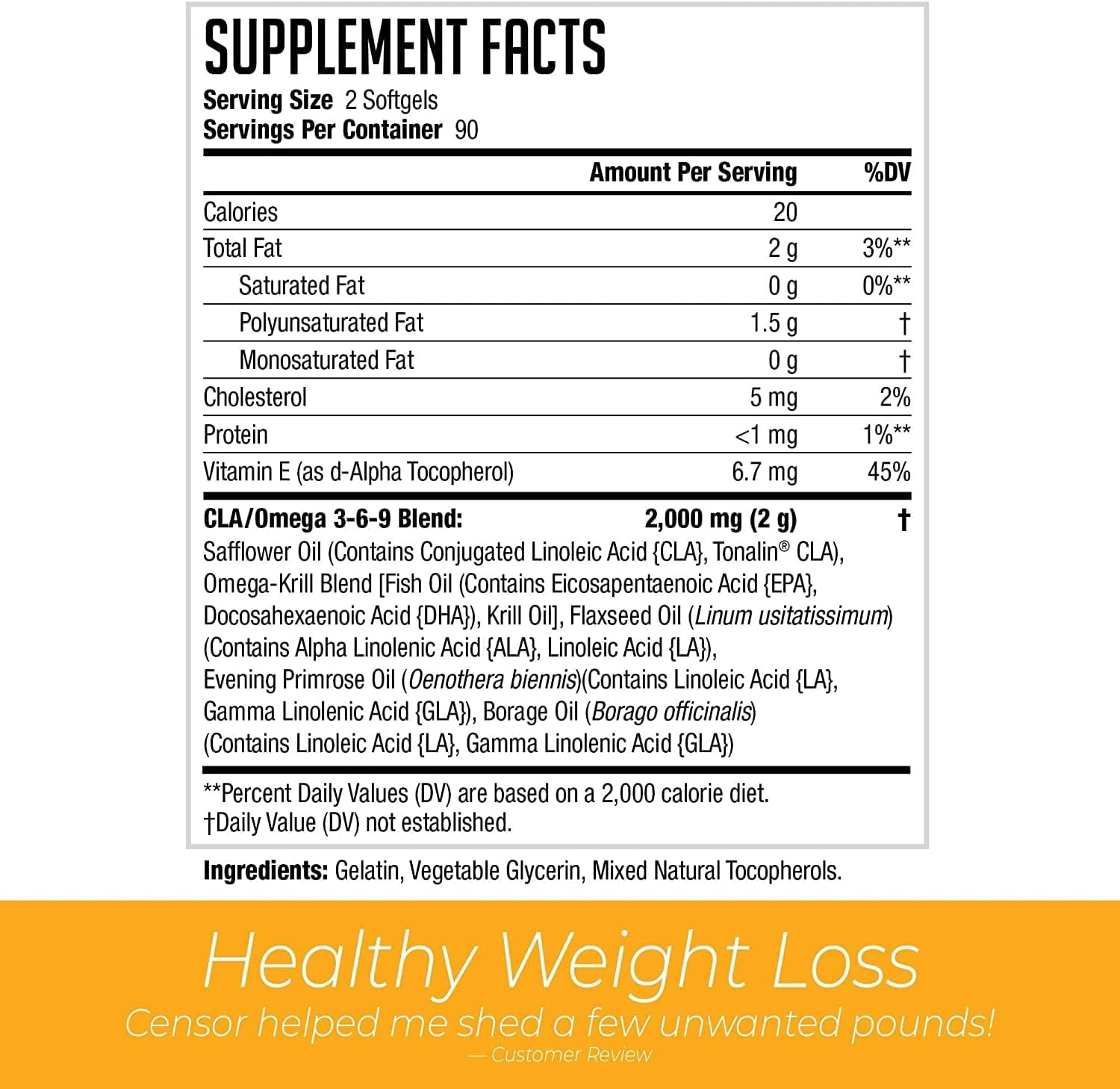 NDS Nutrition Censor – Fat Loss and Body Toner with CLA, Fish Oil, Safflower and Omega 3-6-9 Blend – Dietary Supplement for Improved Energy and Health (90 Softgels)