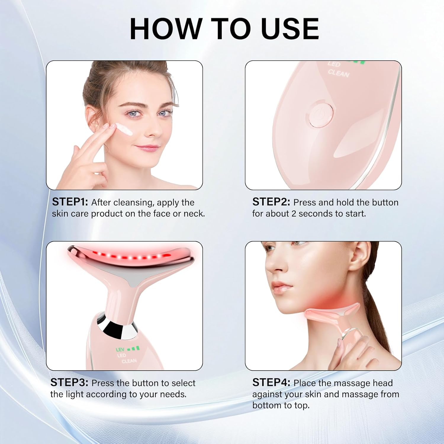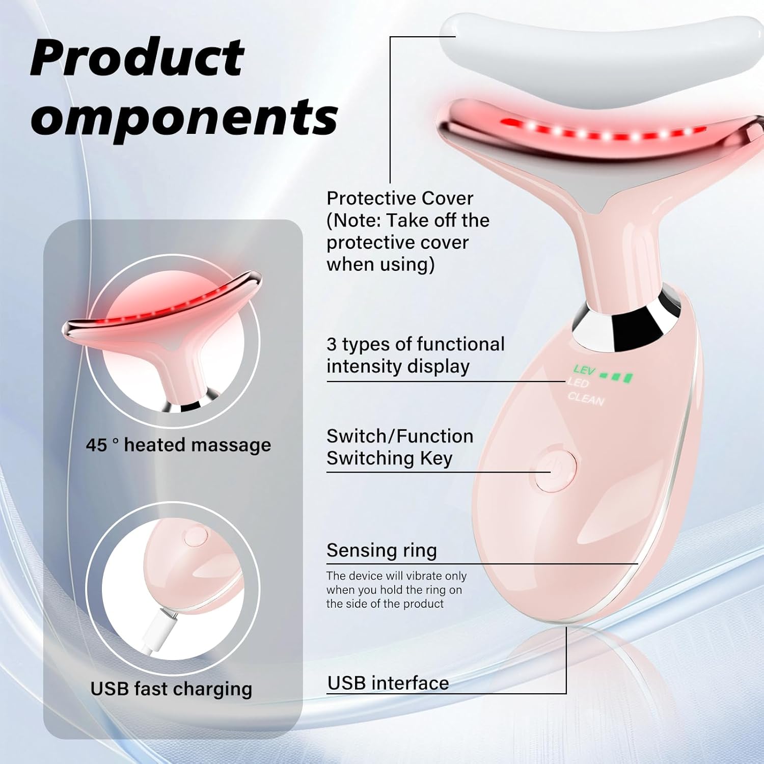 Neck&Face Massager with 7 Colors-Multi-Functional Skincare Tool,Home Beauty Device for Wrinkles&Relaxation (Warm Pink)