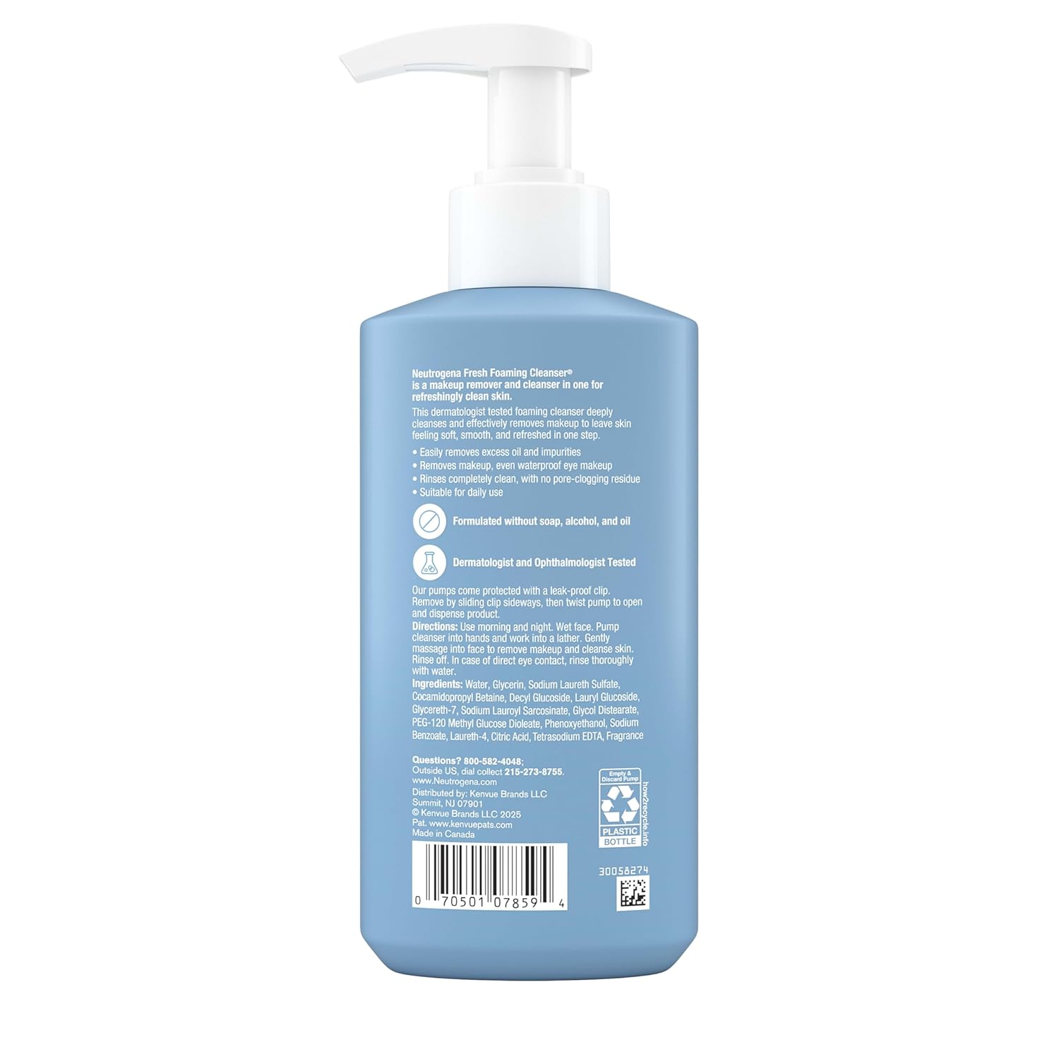 Neutrogena Fresh Foaming Facial Cleanser, All-In-One Makeup Remover Face Wash for Nor-mal to Oily Skin Deeply Cleanses & Removes Waterproof Makeup, Soap-Free, Non-Comedogenic, 8.5 fl. oz