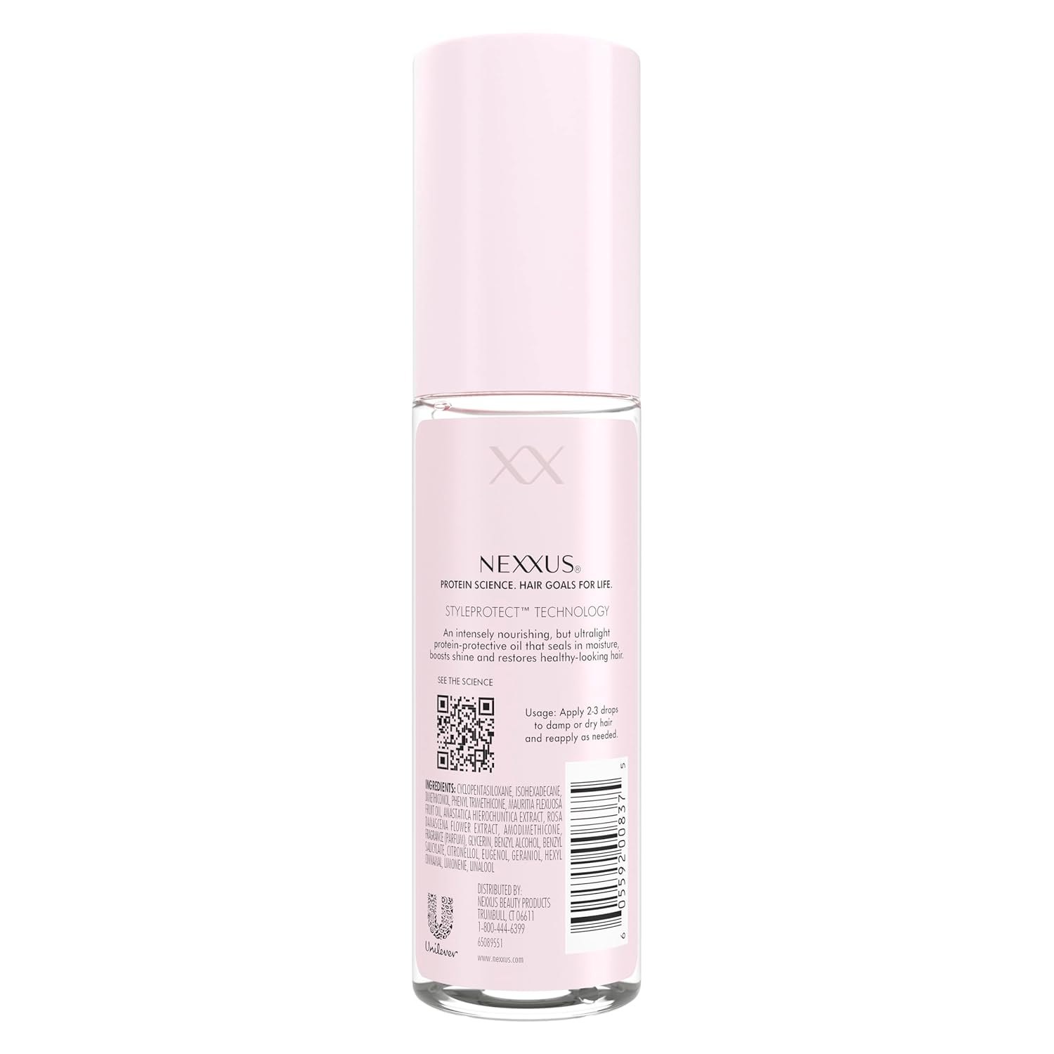 Hair is made up of protein. Every touch, every treatment, every style you love—it all rewrites your hair’s protein. When protein is damaged, hair’s look and feel is compromised. That’s why Nexxus uses protein science not just to repair hair but to restore its ability to perform. It isn’t about one perfect hair day. It’s about a lifetime of style, built strand by strand. That’s where STYLEPROTECT Technology comes in—creating a protective barrier around each strand to lock in moisture and restore hydration while shielding hair from heat up to 450°F. This advanced system brings dry hair back to life, delivers shine, smoothness, and softness in an ultralight formula, making it the perfect style finisher for healthy-looking hair. Our Repair & Nourish Ultra Lightweight Hair Oil intensely nourishes while staying ultralight, sealing in moisture and boosting shine—so dry, tired strands feel revived, look radiant, and shine. With heat protection from styling tools, 72-hour humidity protection, and 48-hour frizz control, this hair oil for dry hair restores softness and smoothness, adds texture and definition, and supports color-safe hair care for healthy-looking hair with lasting hydration, polished shine, and ultimate hair frizz control. Nexxus, the protein science behind powerful hair since 1979.