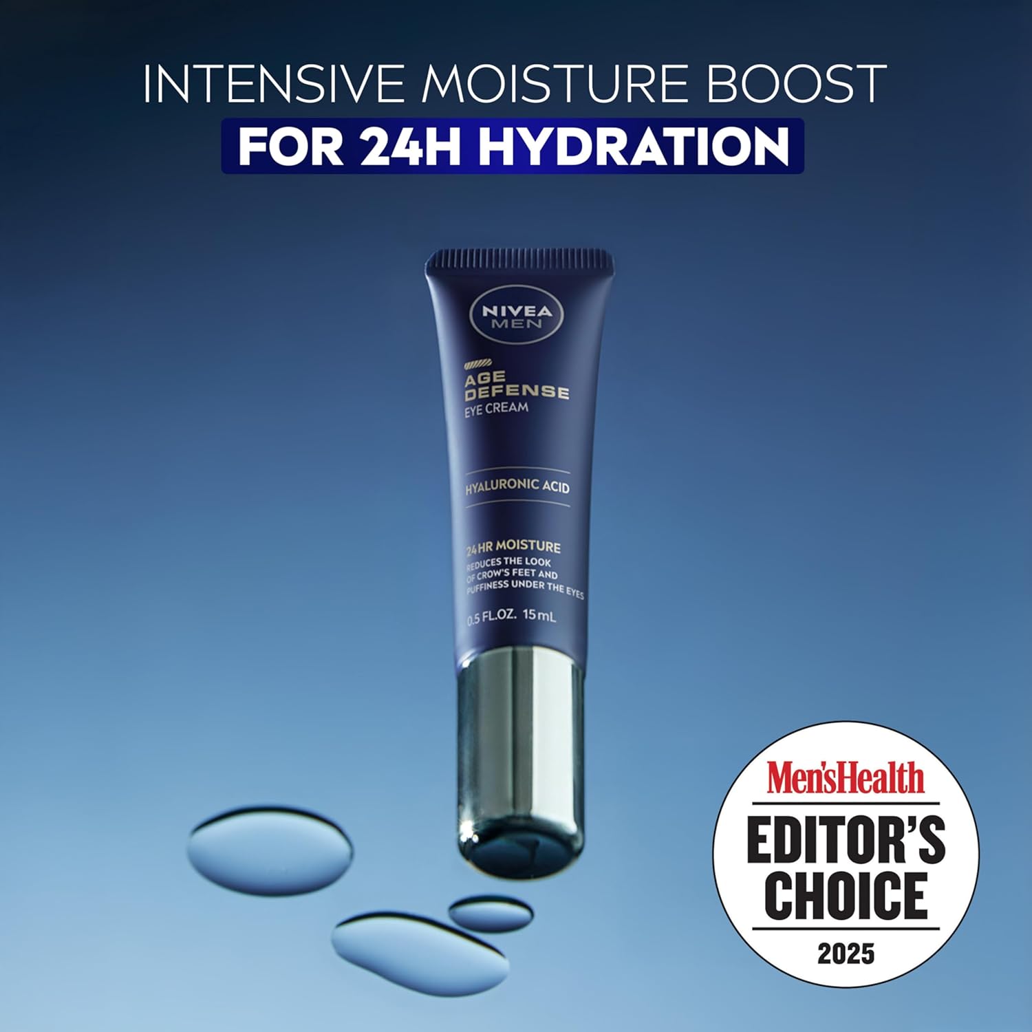 It’s time to help defend skin against the 5 signs of aging… loss of firmness, wrinkles, dry, rough and dull skin. Reduce the signs of dry, tired under eye skin with NIVEA MEN Age Defense Eye Cream. NIVEA MEN eye cream provides intensive moisture for 24-hour hydration. Plus, it helps reduce the look of crow’s feet, fine lines and dark circles under and around the eye area to help reveal brighter, younger-looking skin. NIVEA MEN Age Defense Eye Cream helps to minimize the appearance of puffy eyes. Enriched with Hyaluronic Acid, this eye cream for men reduces the look of visible signs of aging. This eye cream was dermatologically tested on men with sensitive skin. Apply this under eye cream as part of a daily men’s skin care routine. Use morning and night. Apply a small amount to clean skin, patting gently and evenly around the eye area, avoiding the eyelids and avoiding contact with eyes. (1) No animal derived ingredients (2) Naturally Derived Ingredients have undergone processing while retaining a majority of their natural molecular structure (3) 10% Skin safe synthetic ingredients are included to maintain the integrity of the product (Methylpropanediol, Cetyl Alcohol, Dicaprylyl Ether, Phenoxyethanol, Ethylhexylglycerin, Caprylyl Glycol, Sodium Hydroxide)