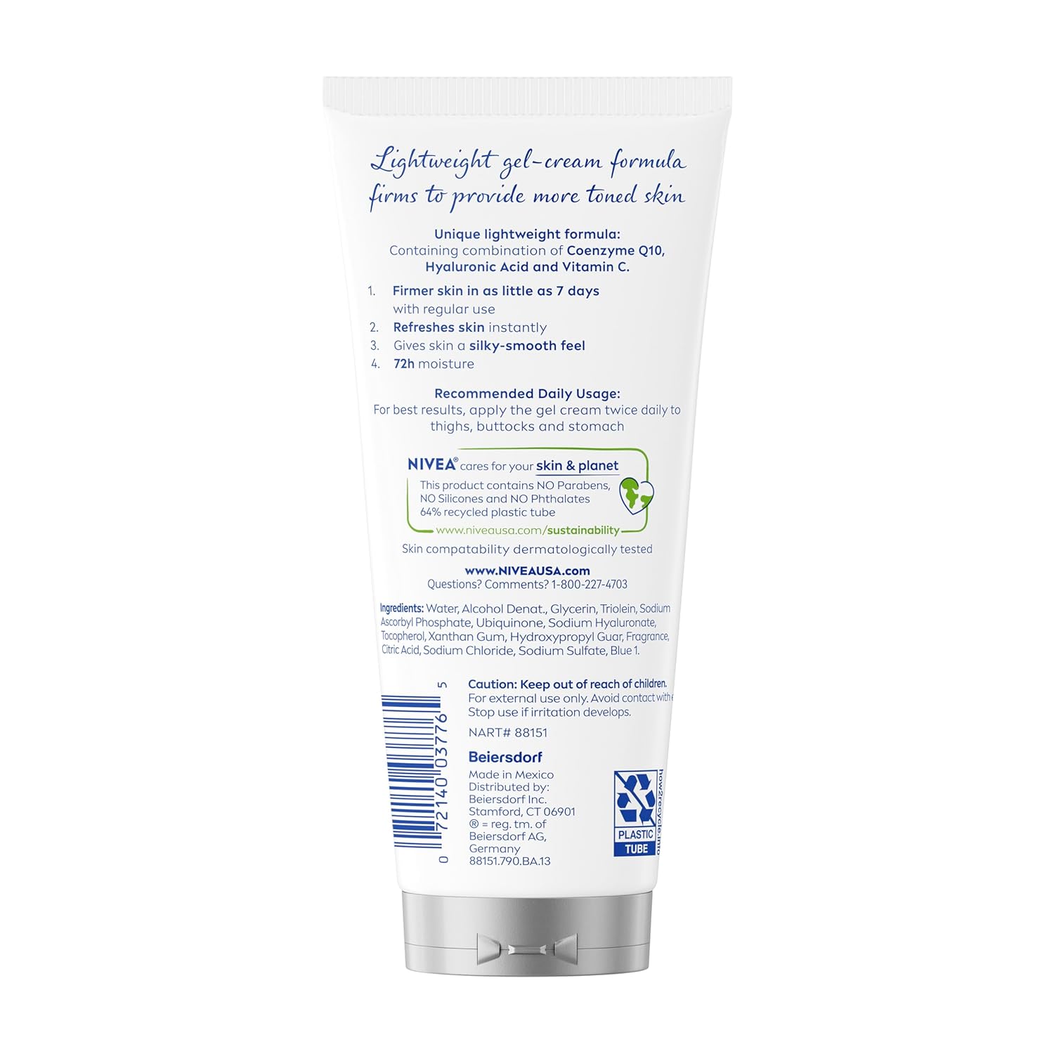 INCLUDES: One 6.7 ounce tube of NIVEA Skin Firming and Toning Body Gel Cream, New Look and Formula