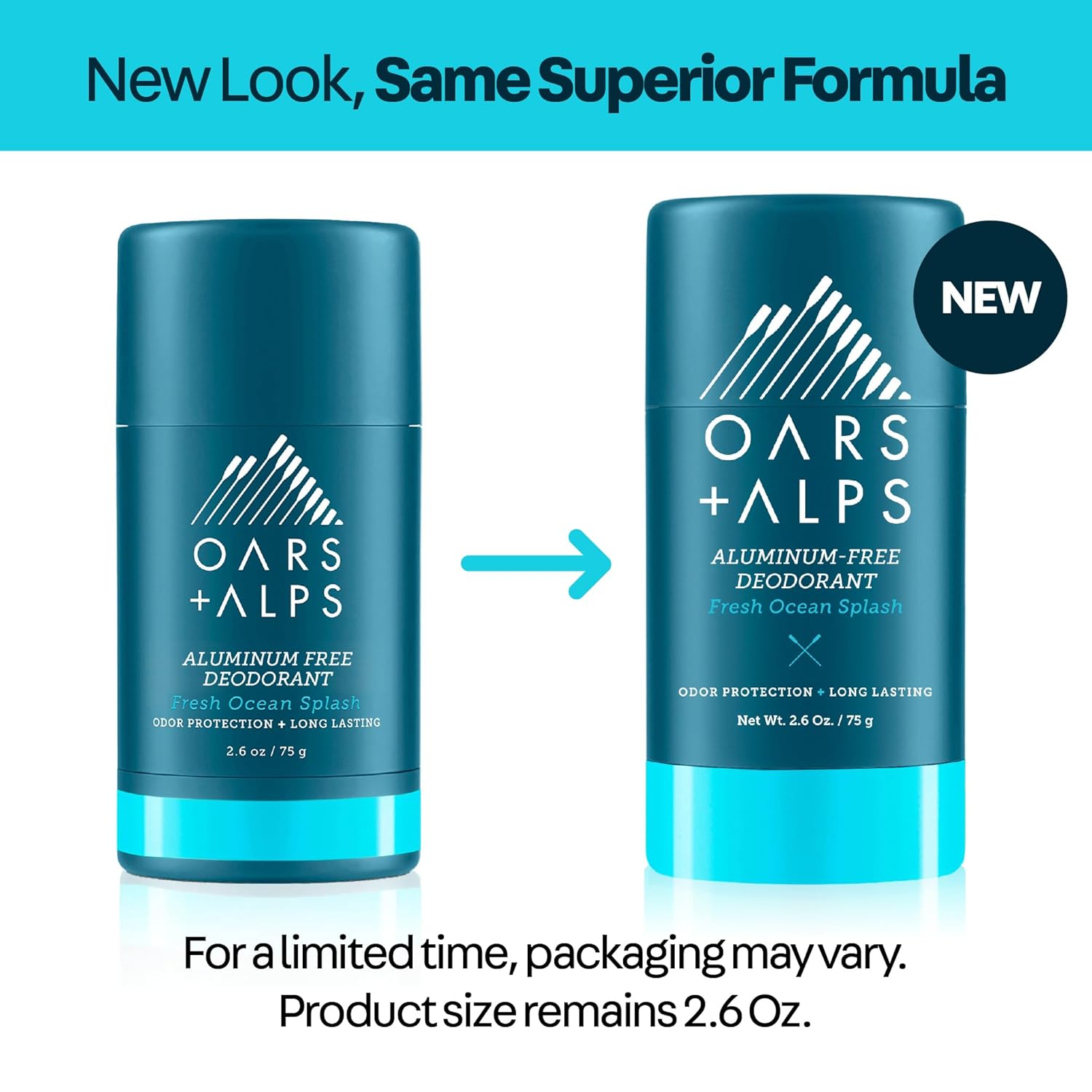 Oars + Alps Aluminum Free Deodorant for Men | Long Lasting Odor Protection, Clear & Free of White Residue, Anti-Chafing Smooth Glide, Dermatologist Tested, Fresh Ocean Splash, 1pk, 2.6oz