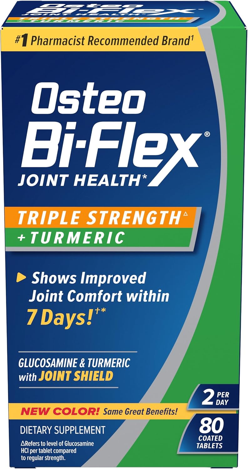 Osteo Bi-Flex Glucosamine Triple Strength Plus Turmeric Supplement with Curcumin for Joint Support and Range of Motion, 40 Day Supply, 80 Coated Tablets, Joint Health Nutritional Supplements