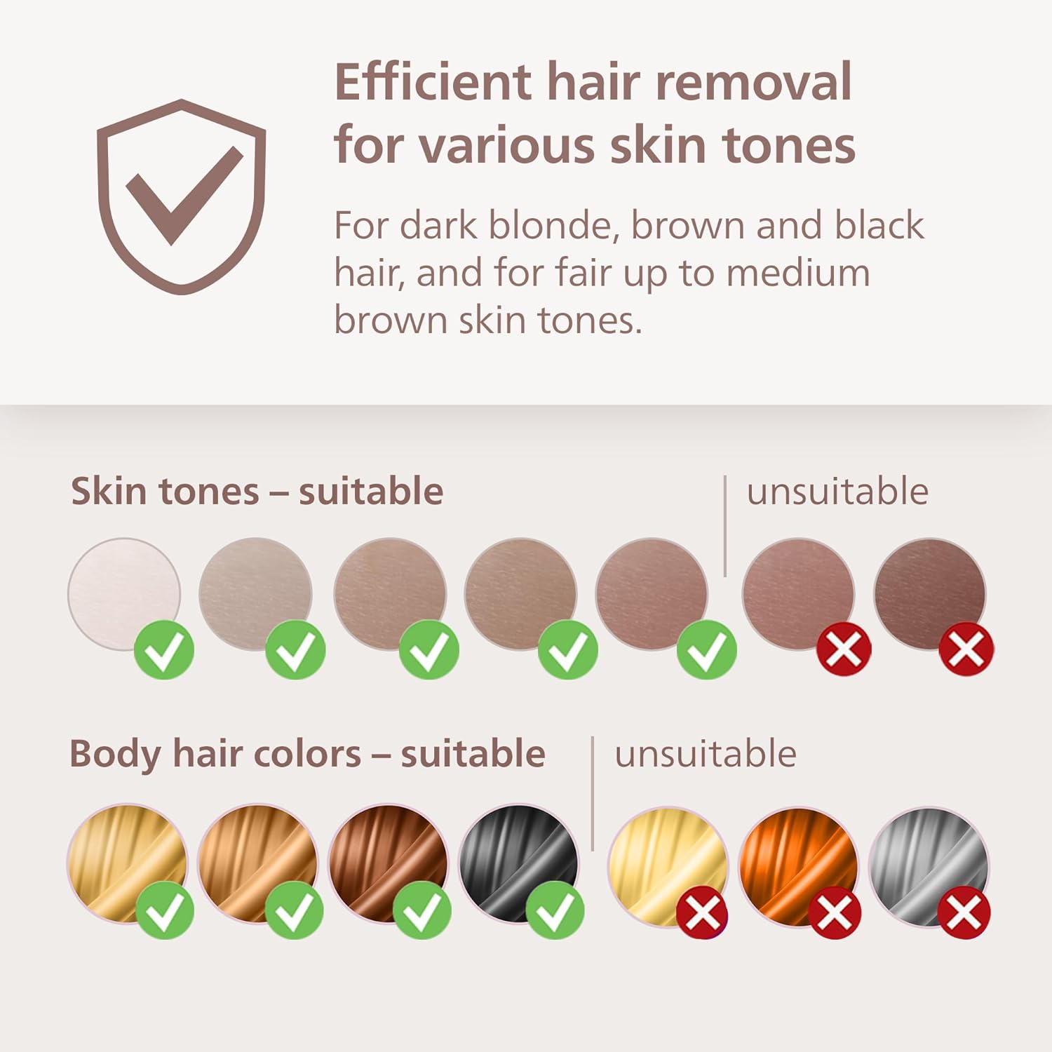 SenseIQ technology uses 3 sensors to read your skin tone and adjust temperature for a safe and comfortable treatment; it detects good skin contact to avoid flashing in the eyes (no goggles needed)