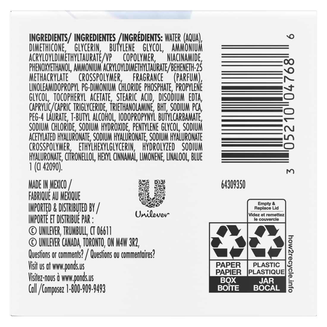 Unlock deep, long-lasting hydration with POND’S Fresh Hydration Hyaluronic Acid Gel Moisturizer, lightweight and powered by four types of Hyaluronic Acid that draw in moisture and help your skin feel plump, smooth, and refreshed all day. This dermatologist-tested formula is enriched with Vitamin E to help defend against free radicals, and Vitamin B3 (Niacinamide) to brighten skin tone and reduce the appearance of hyperpigmentation. The alcohol-free, oil-free gel texture absorbs quickly—without stickiness—making it perfect for use under makeup or as the final step in your skincare routine. How to Use: Apply evenly to clean, dry skin on the face and neck. Use morning and night for best results. For optimal hydration, layer after cleansing with your favorite POND’S Cold Cream facial cleanser. With 170+ years of trusted innovation, POND’S is more than skincare—it’s a legacy rooted in tradition, empowering every woman to glow with confidence. Because beauty runs deep.
