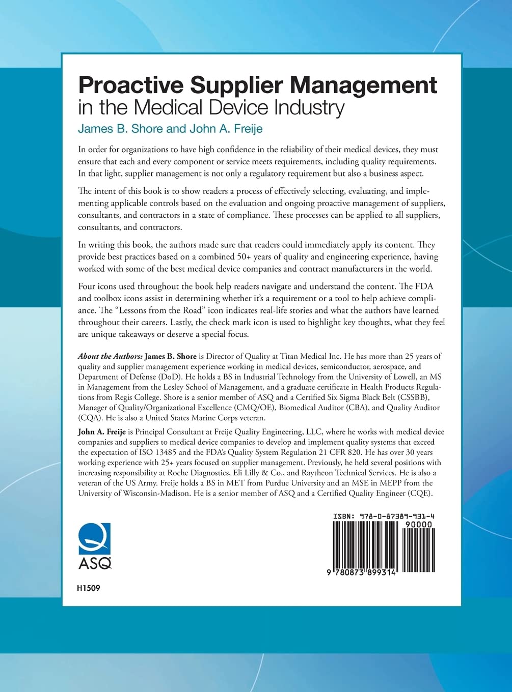 In writing this book, the authors made sure that readers could immediately apply its content. They provide best practices based on a combined 50+ years of quality and engineering experience, having worked with some of the best medical device companies and contract manufacturers in the world.