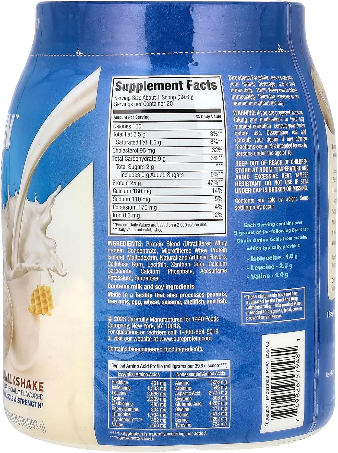 Pure Protein Vanilla Cream 100% Whey Protein Powder helps keep your body fit and ready for action by providing the essential amino acids needed to help support lean muscle, energy, vitality and strength.(1) This fast-acting, low fat protein powder blend contains 25 grams of protein and 2 grams of sugar per serving. The convenient, easy-to-mix bulk protein powder contains only the most superior protein sources. Great for pre workout and post workout whey protein drinks, our vanilla whey protein powder is also a great addition to recipes for protein cookies and other protein snacks. Whether you’ve just completed a hard workout or are looking for nutrient-rich midday vanilla protein shakes on a busy day, just add a scoop of delicious protein shake powder to your protein shaker with water, shake it up and enjoy! Pure Protein proudly offers products with high protein, low sugar (2) and great taste.
