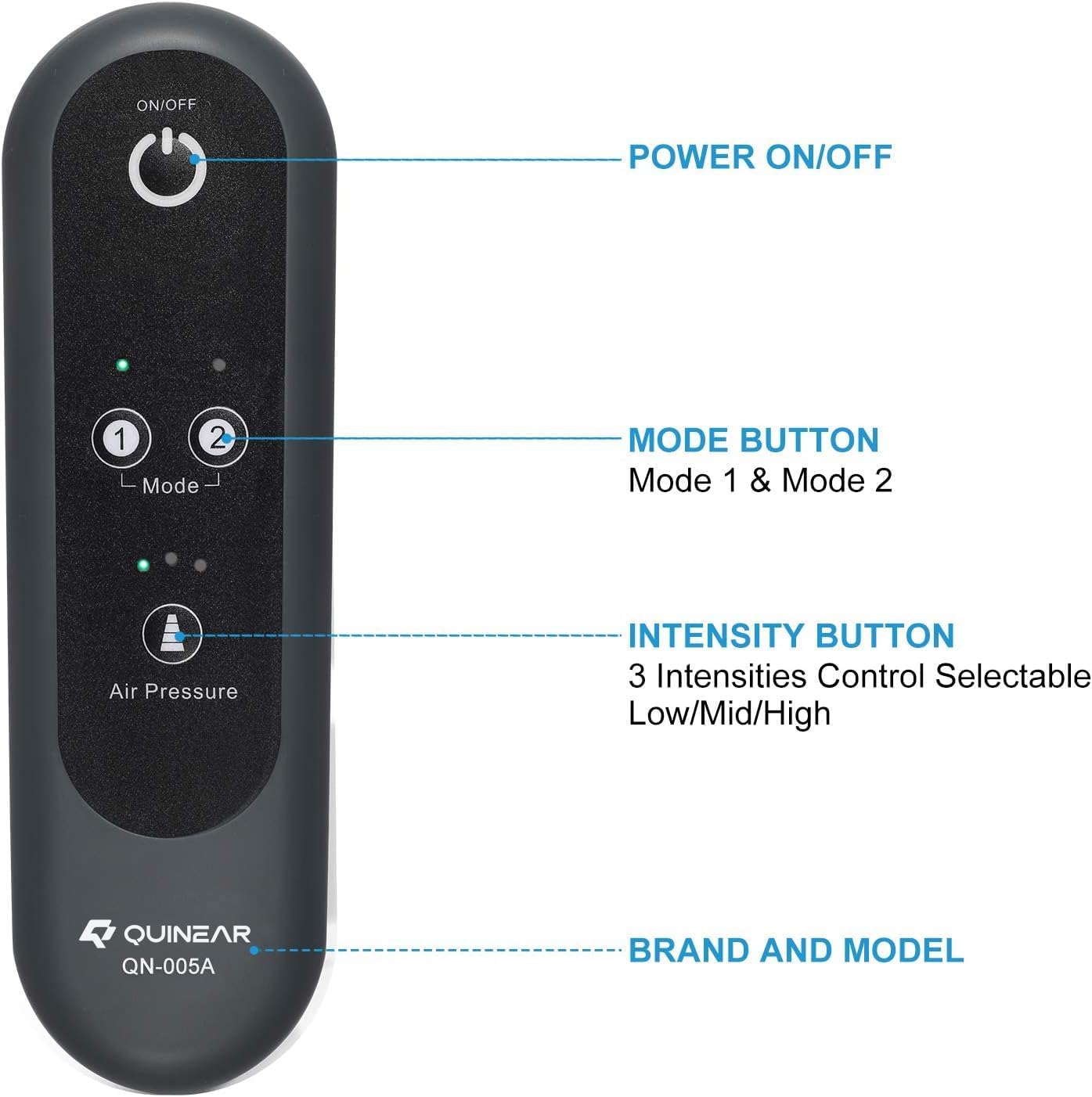 2 MODES & 3 INTENSITIES: Pick your perfect squeeze. 2 massage modes and 3 air pressure levels give you 6 different sensations, all controlled with one thumb on the wired handhold controller. After 20 minutes it shuts itself off—ideal for naps or grandparents who might forget