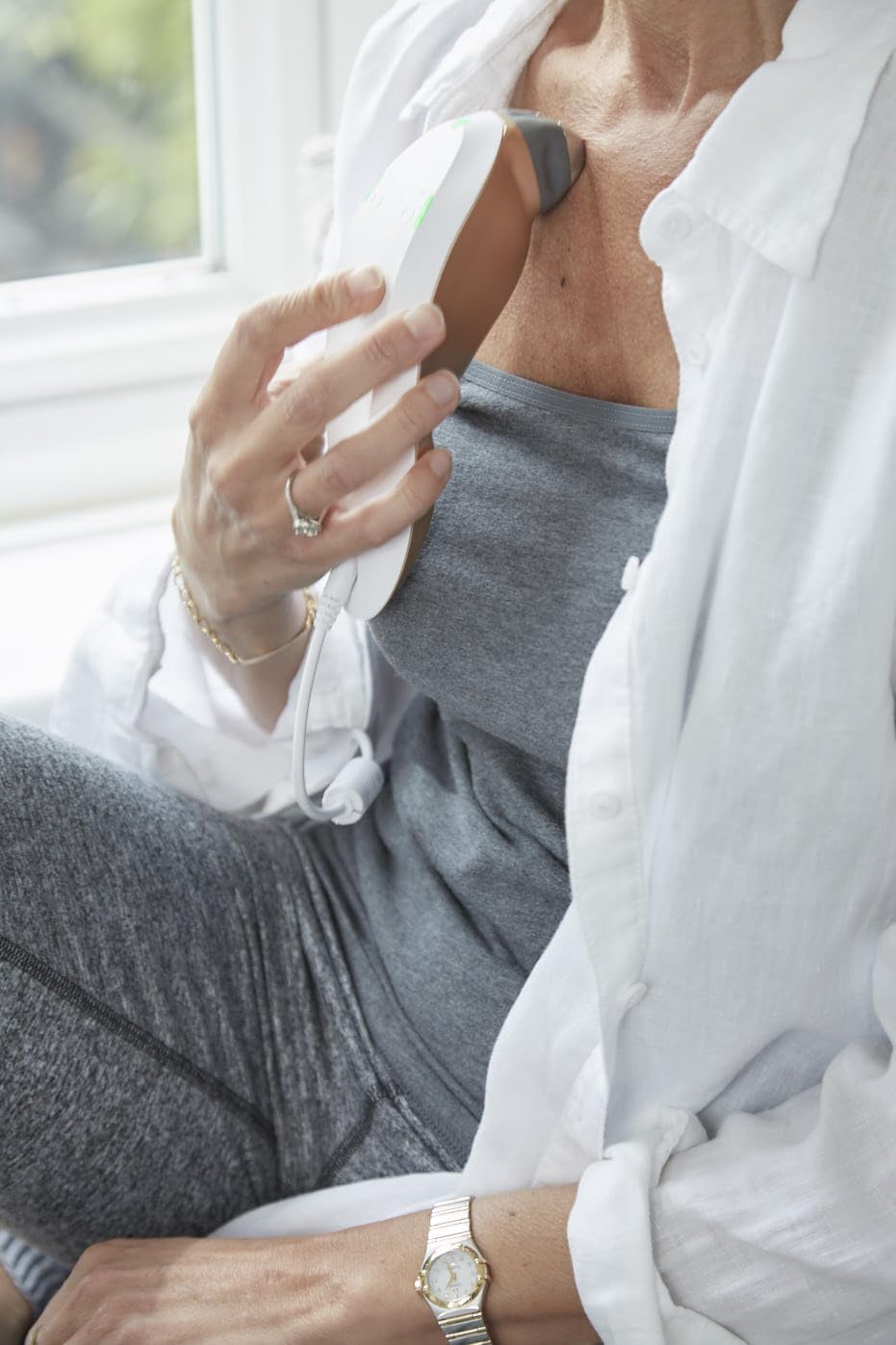 The Dynamic RF technology in SensiLift combines RF (Radio Frequency), with advanced facial massage. These waves reach deeper and more evenly through the skin layers, generating new collagen and resulting in reduced wrinkles and improved elasticity.