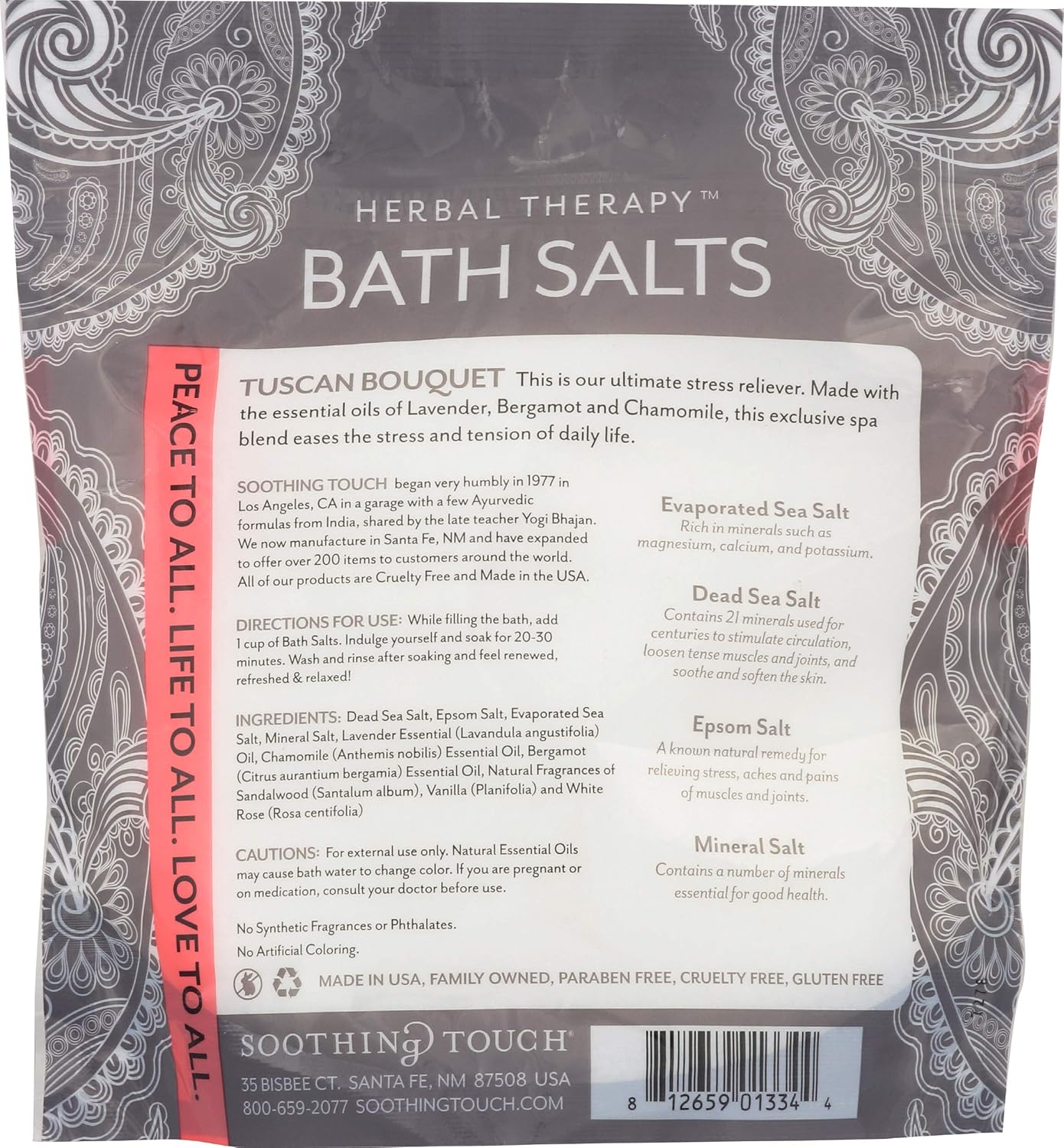 Soothing Touch Rest & Relax Tuscan Bouquet Bath Salts Lavender Chamomile & Bergamot, Floral, 32 Oz