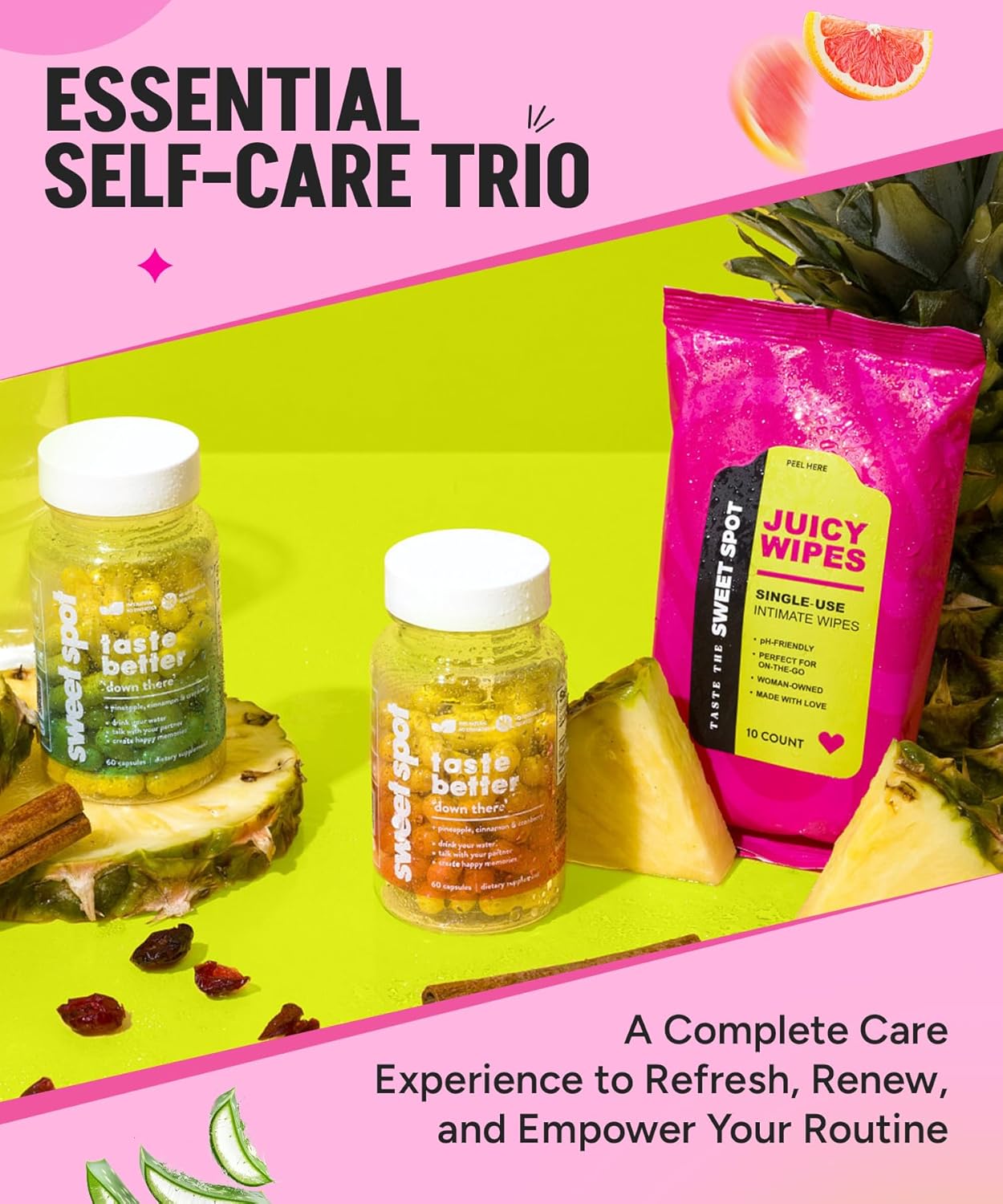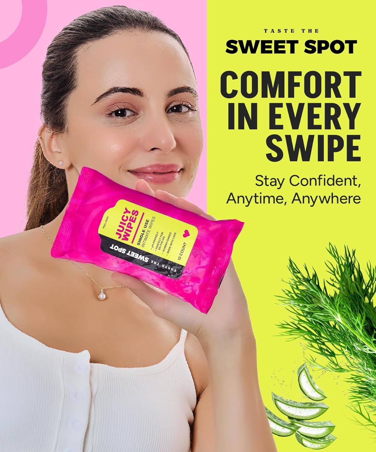 SWEET SPOT Flushable Feminine Wipes for Odor Control, pH Balance – Paraben-Free & Vegan, Intimate Wipes with Aloe Vera & Botanical Extracts – Ideal for Periods, Gym & Travel – 10ct