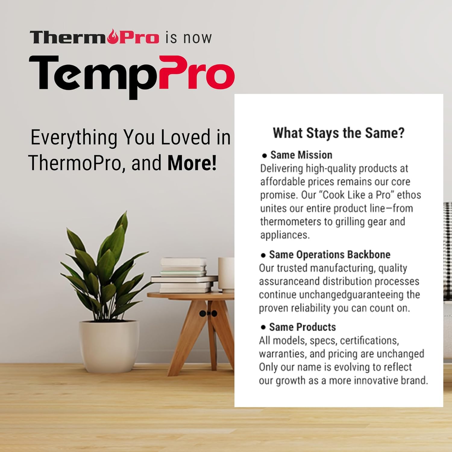 ThermoPro is now TempPro! TempPro will maintain same mission, same operation backbone and same products as ThermoPro; Random delivery, you may receive either a ThermoPro or TempPro branded product