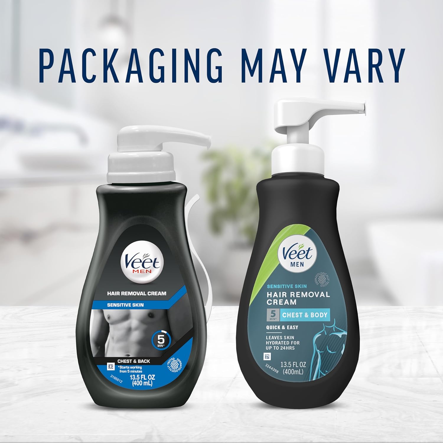 Veet Hair Removal Cream For Men, 5 Min Sensitive Skin, Hair Removal Gel For Body, Chest & Back, Dermatologically Tested, 13.5 FL OZ w/ Spatula