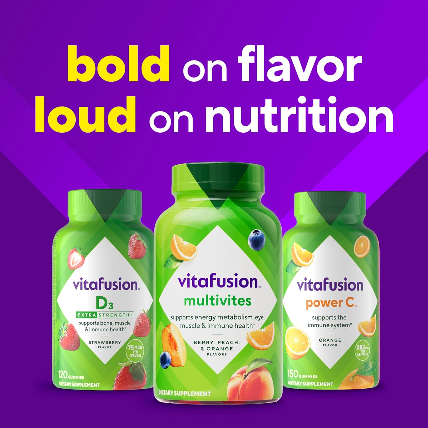 vitafusion multivites combine 10% more vitamins A, C, and E to support energy metabolism, eye, muscle, and immune health.*