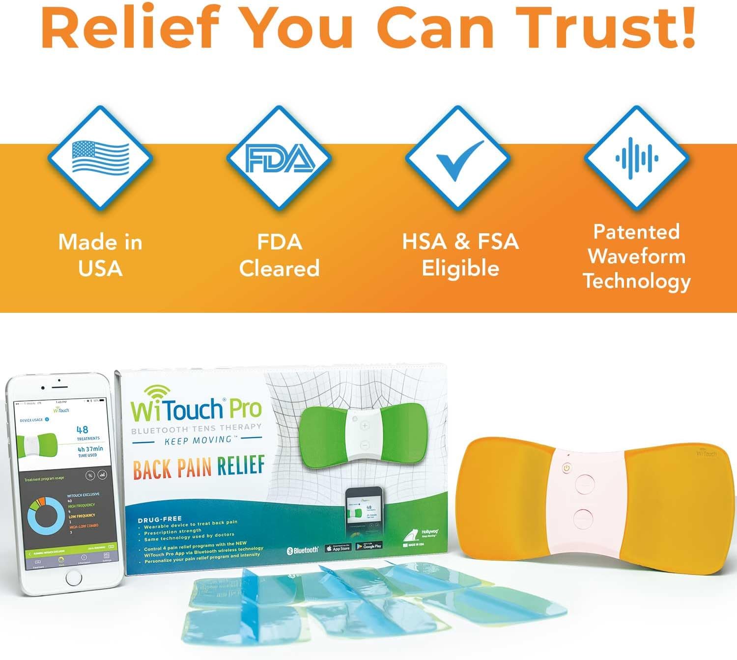 WiTouch Pro TENS Unit for Back Pain Relief & Recovery, Wireless, Wearable Muscle Stimulator, Made in USA, Gel Pads Included