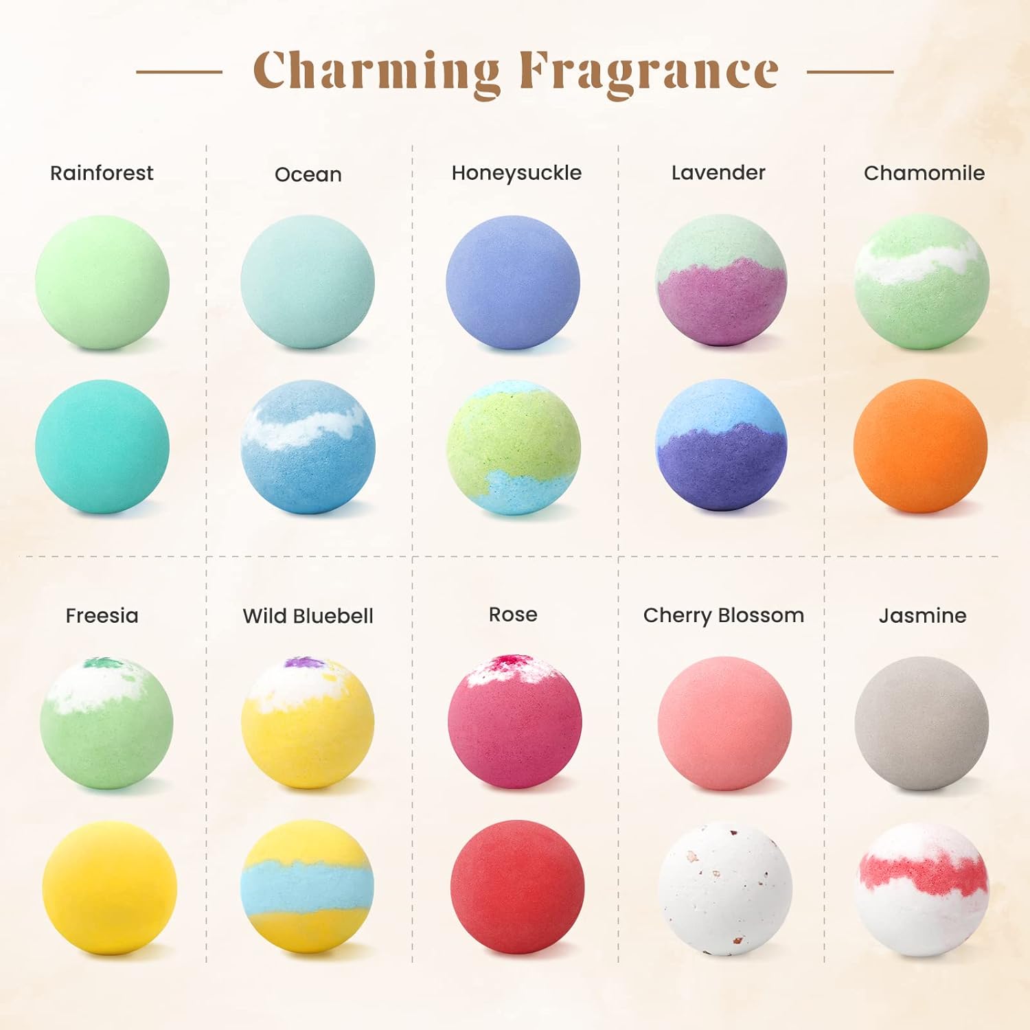 Variety of Choices: 40 bathbombs in 10 different scents; And we has been assessed by the NSF and complies with the Cosmetic Good Manufacturing Practices from the U.S Food and Drug Administration(FDA);